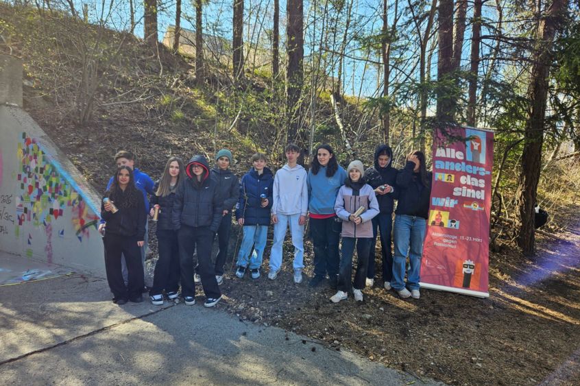 Zwei Vormittage, eine Klasse der Realschule Vaduz und ein klares Ziel: sich mit Rassismus auseinandersetzen und gemeinsam ein Zeichen setzen. Im Rahmen der landesweiten Aktionstage gegen Rassismus diskutierten die Jugendlichen persönliche Erfahrungen, entwickelten eigene Ideen und brachten ihre Haltung auf den Punkt. Unterstützt von der OJA Schaan, der OJA Vaduz und dem Graffiti-Künstler Michael Büchel von der OJA Triesen entstand in der Unterführung Quaderrüfe zwischen Vaduz und Schaan ein gemeinsames Graffiti mit der Botschaft „All Colors United“. Ein sichtbares Statement für Respekt, Vielfalt und Zusammenhalt im öffentlichen Raum. Danke an die Gemeinde und das Land für die Unterstützung und die Möglichkeit, dieses Projekt umzusetzen.