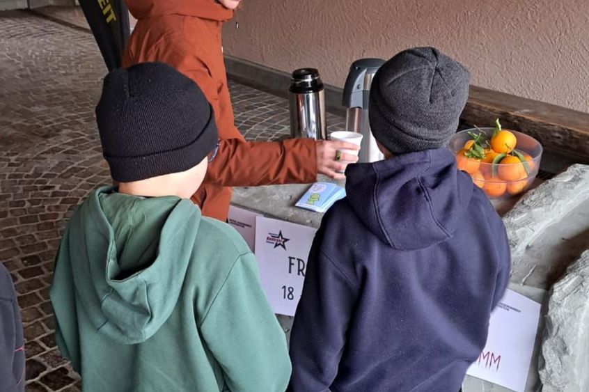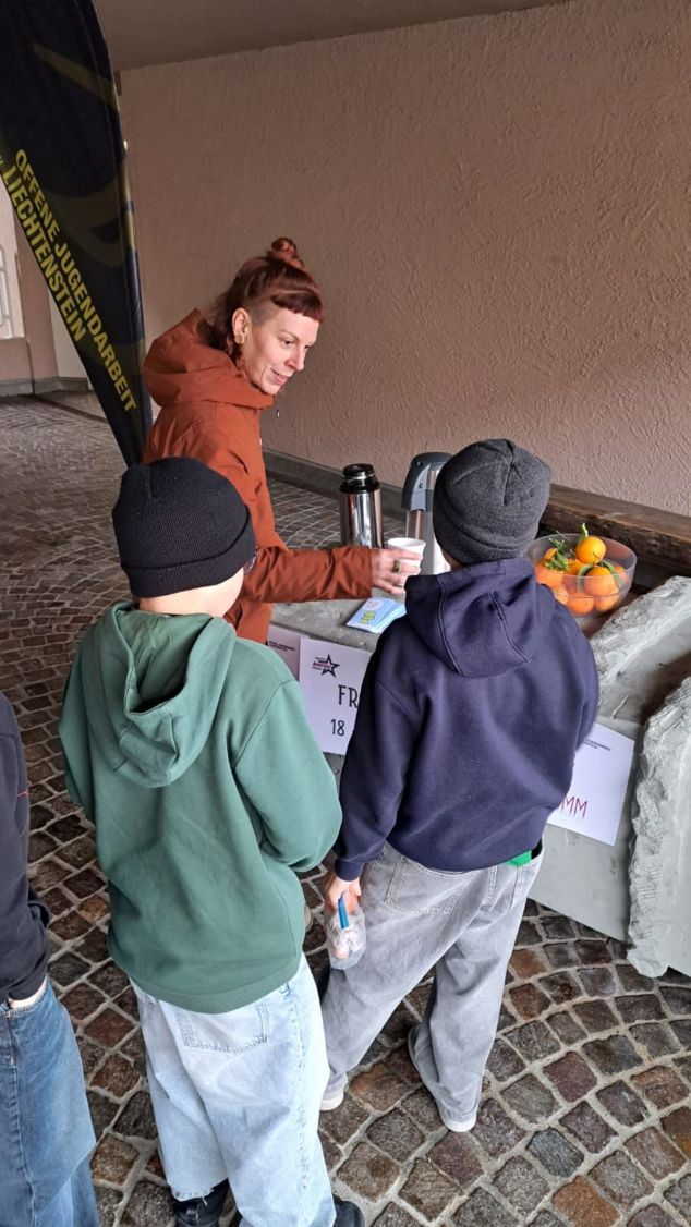 In den letzten Wochen standen die Vitaminwochen auf dem Programm: Wir verteilten kostenlos frisches Obst – ein Angebot, das grossen Anklang fand. An besonders kalten Tagen hatten wir zudem warmen Tee im Gepäck, der bei vielen gut ankam und für etwas Wärme in der Pause sorgte.